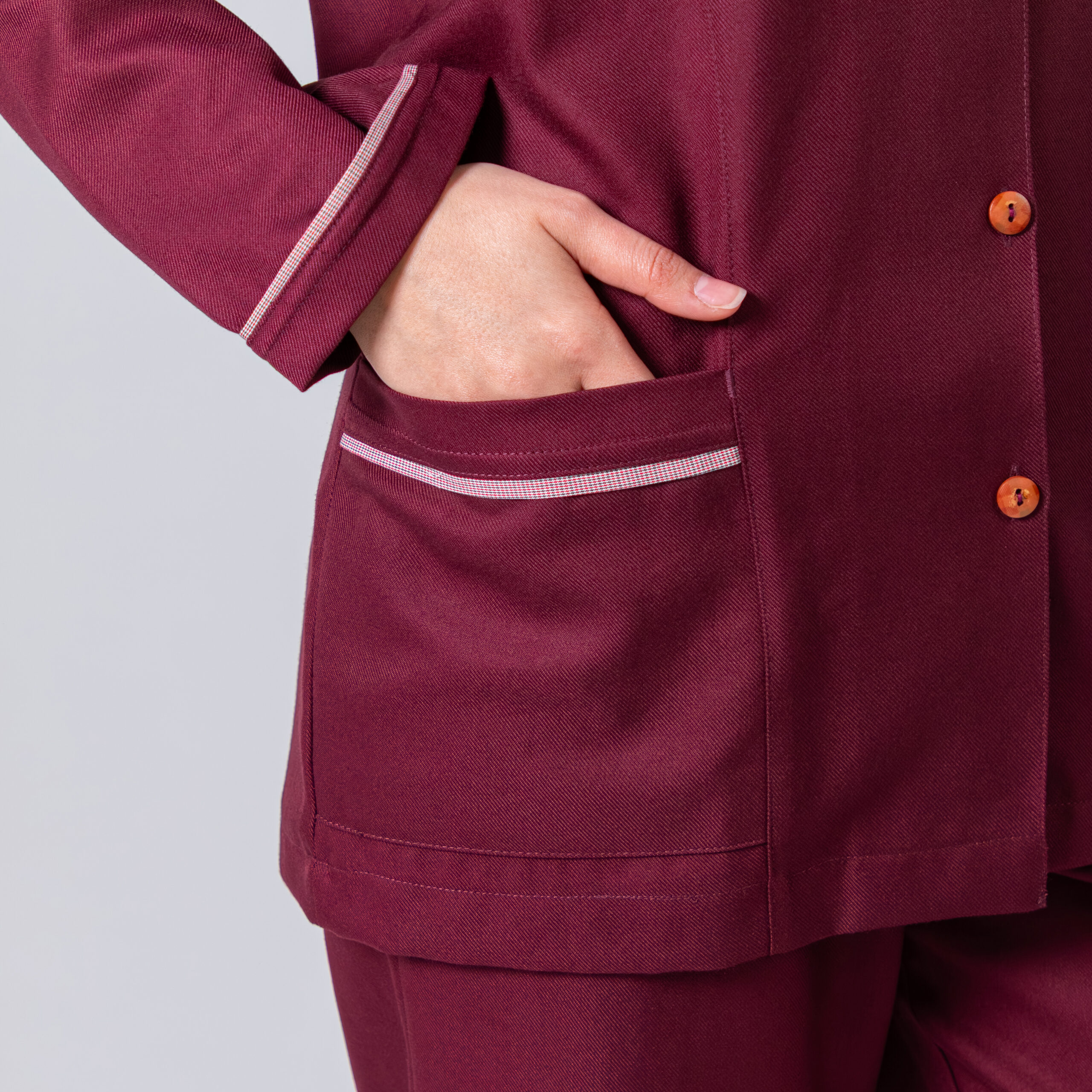 تتميز البدلة بقماش سميك نسبيًا يساعد على الحفاظ على حرارة الجسم، مع تصميم عملي يسمح بسهولة الحركة أثناء أداء المهام اليومية.